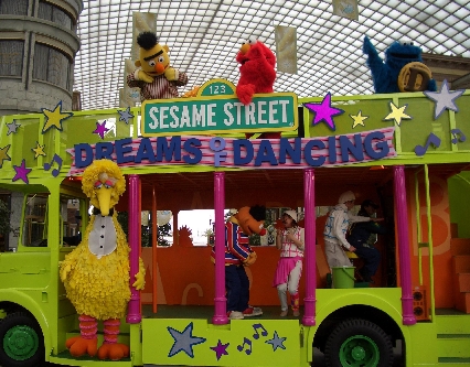 O系新幹線の車内で人形劇ビデオが上映されます。